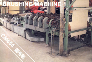 本机将割断的棉灯芯绒作纬向横刷,使之呈绒毛状态。